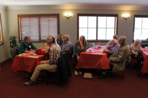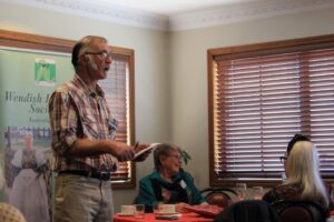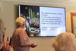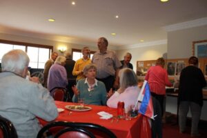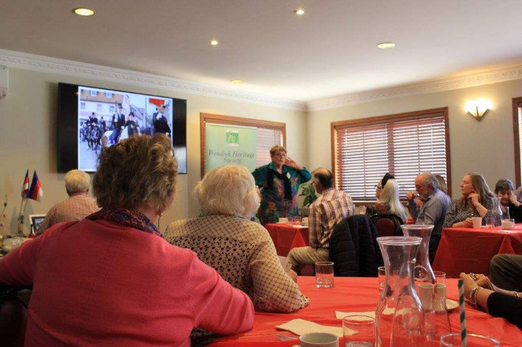 Colourful posters depicting costumes, customs and scenery in Lusatia, Germany were on display and various family history books were for sale. The post-Luncheon talk and videos were presented by Guest Speakers Betty and Colin Huf. They informed the diners about their recent “Hochkirch and Homelands Tour, Easter 2023”.