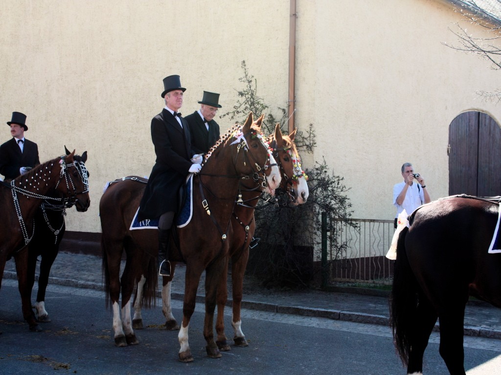we remember on our stay at you very often with pleasure and submit you herewith our easter greetings. Enclosed you will find actual fotos from easter riding processions (about 1.700 riders at 9 different processions) and easter blossom behind our house. Furthermore is enclosed my report from our visit at Hochkirch published in our monthly newspaper “Pomhaj Boh”. An English version will follow if you are interested in. The best regards from Hochkirch to Hochkirch