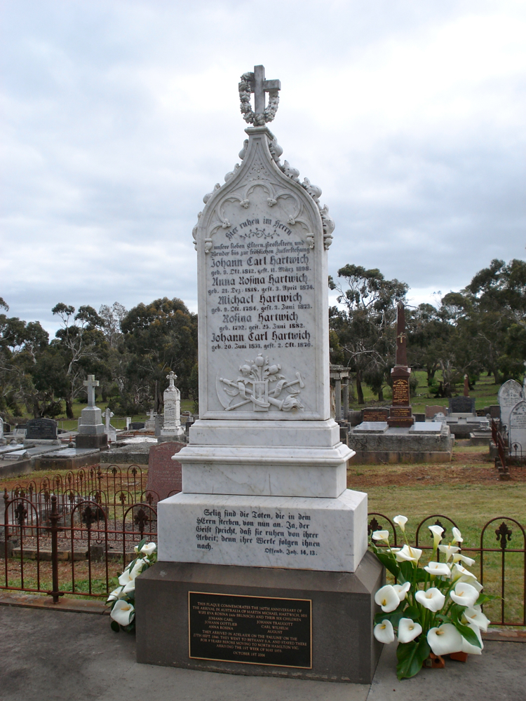 After lunch in the church hall we gathered at the South Hamilton Cemetery where Betty Huf pointed out the resting places of family members. This was followed by a pilgrimage to “Wattle Park”, the original Hartwich family property at North Hamilton.