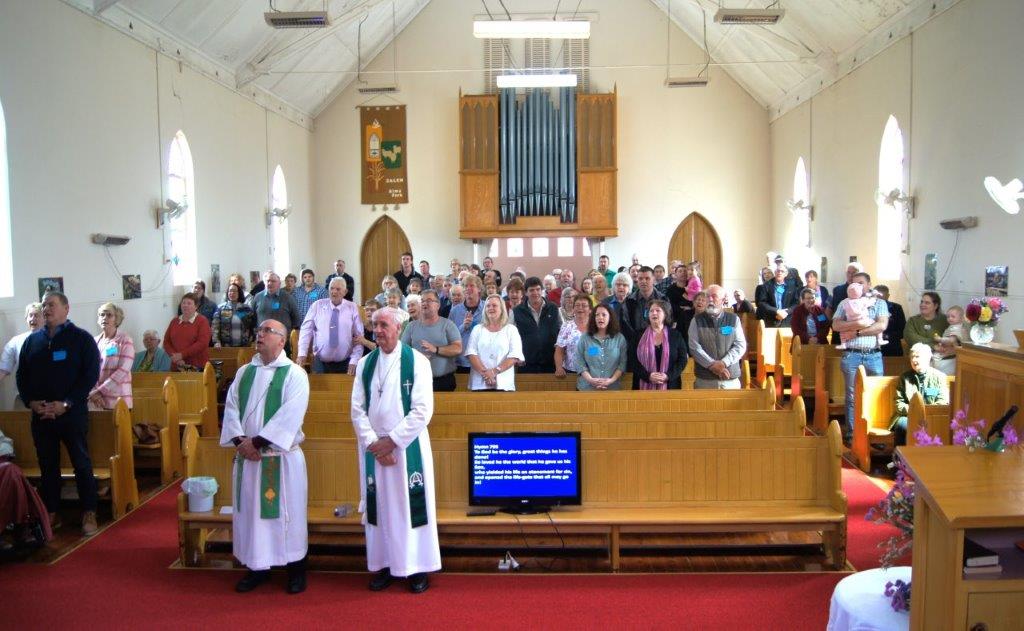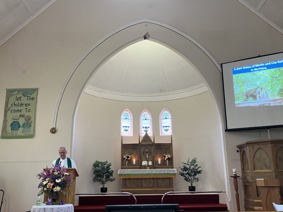 On Sunday a thanksgiving service was held at Salem Lutheran Church at Alma Park. This was led by Pastor Ian Kotzur and Pastor John Borchert. After the service a group photograph was taken in front of the church. A plentiful luncheon of steak sandwiches, sausages in bread, sandwiches, cakes and desserts in the Alma Park Hall was appreciated by all. The noise level of the conversations indicated the huge enjoyment of catching up with extended family. Tables of photos and memorabilia were assembled along a wall for people to browse some family history and go on a nostalgic journey.