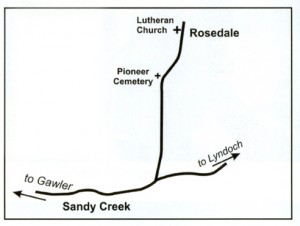 To get to Rosedale: From Gawler take the road to Lyndoch. 1km past Sandy Creek, turn left for Rosedale, which is 5km to the north. The Wendish Pioneer Heritage Trail sign has been erected at the Lutheran church. The Pioneer Cemetery is 2km south of Rosedale at 327 Rosedale Rd.